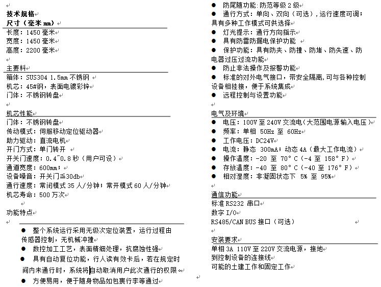 防范等级3:该设备采用机械装置和安装在机械上的传感器进行双向通行识别和尾随控制。
