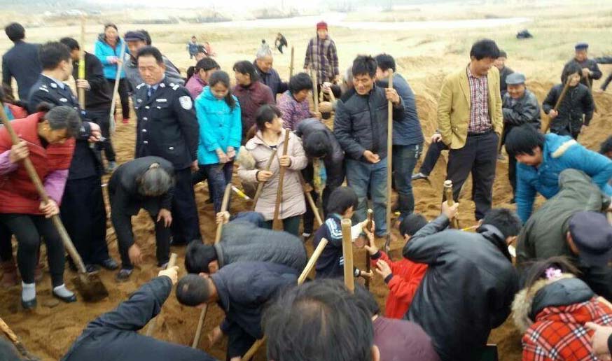 手持铁锹,屏气凝神弯腰细挖。少部分驻马店群众甚至带来了地下金属探测器。除了热火朝天的挖宝人,高店